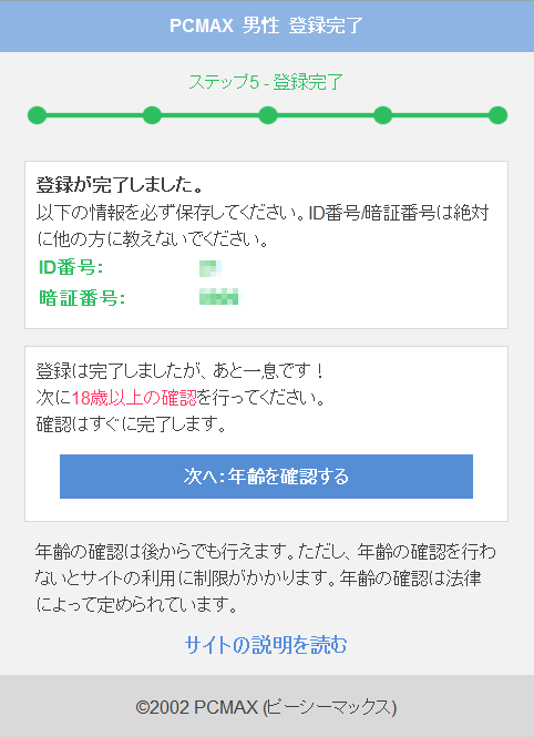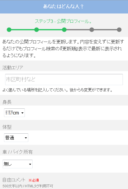 性別にチェックフラグを付け、「ニックネーム」「暗証番号」「生年月日」などの必要項目を入力します。